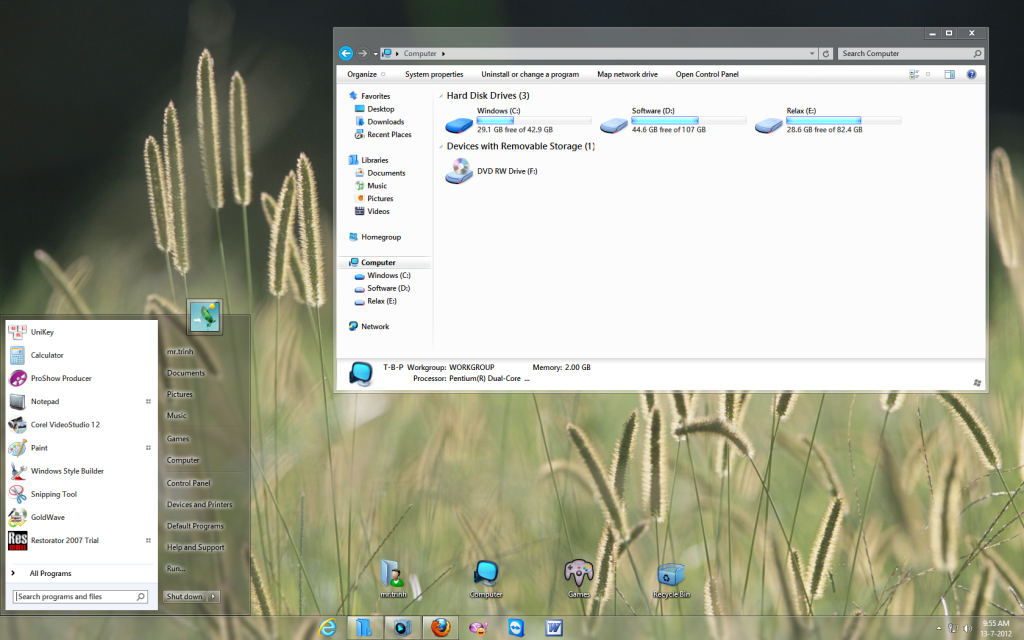 Các bạn tải về, giải nén, cài đặt Font nhé ( Font của w8 đấy, nhớ backup lại cái Segoe UI mặc định của w7). Nếu ai chưa patch theme thì làm trc đã nhé ( sài 32 bit hay 64 bit