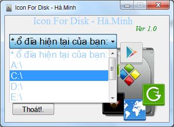 - Icon For Disk là công cụ cho phép bạn sử đổi Icon mặc định các ổ đĩa có mặt trong máy tính của bạn thành những tấm ảnh Icon của riêng bạn.