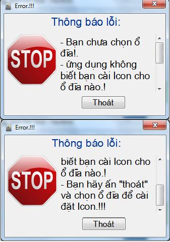 - Lỗi này xuât hiện khi bạn chưa chọn ổ đĩa mà đã nhấn vào chức năng "Chọn Icon".